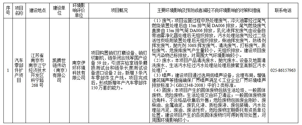******有限公司汽车零部件扩产项目环境影响评价文件进行审查,现将拟审查的环境影响评价文件基本情况予以公示,公示期为2025年9月26日-2025年10月9日(5个工作日)。